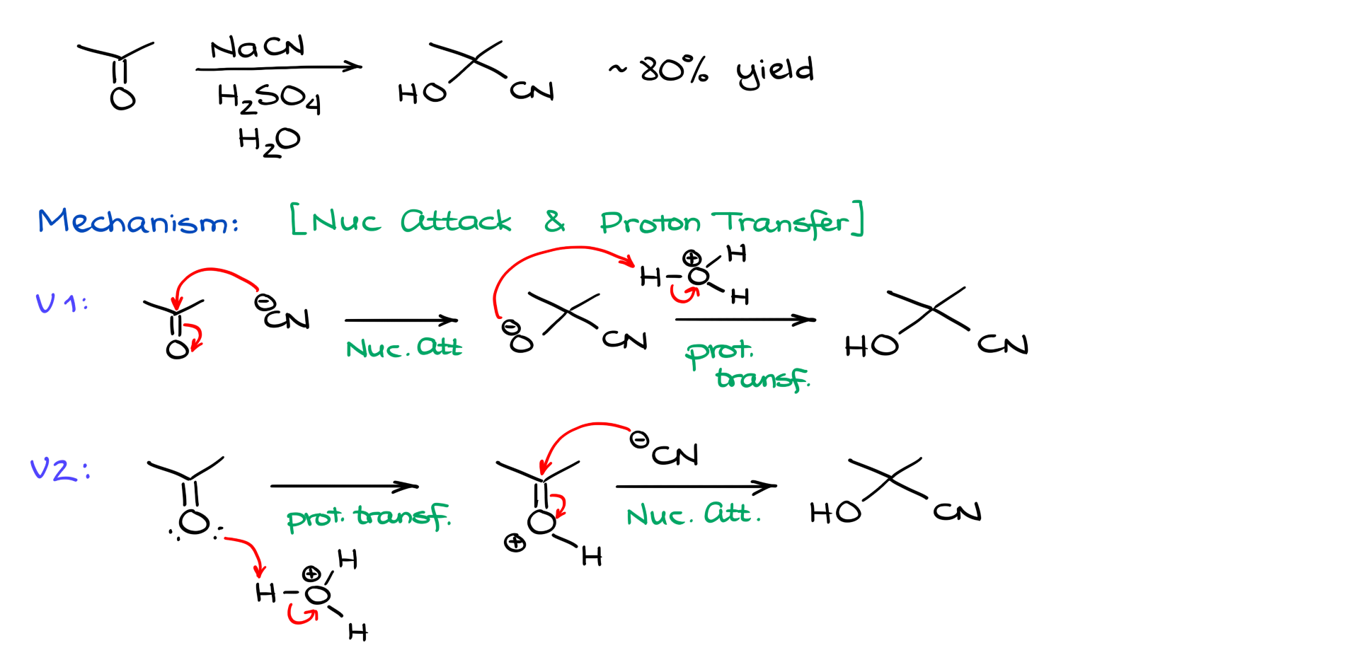 Formation of cyanohydrins from aldehydes and ketones is probably one of the first reactions we introduce in the carbonyl chapter. In a nutshell, this is a reaction of a carbonyl compound, either an aldehyde or a ketone, with cyanide, giving the corresponding cyanohydrin.