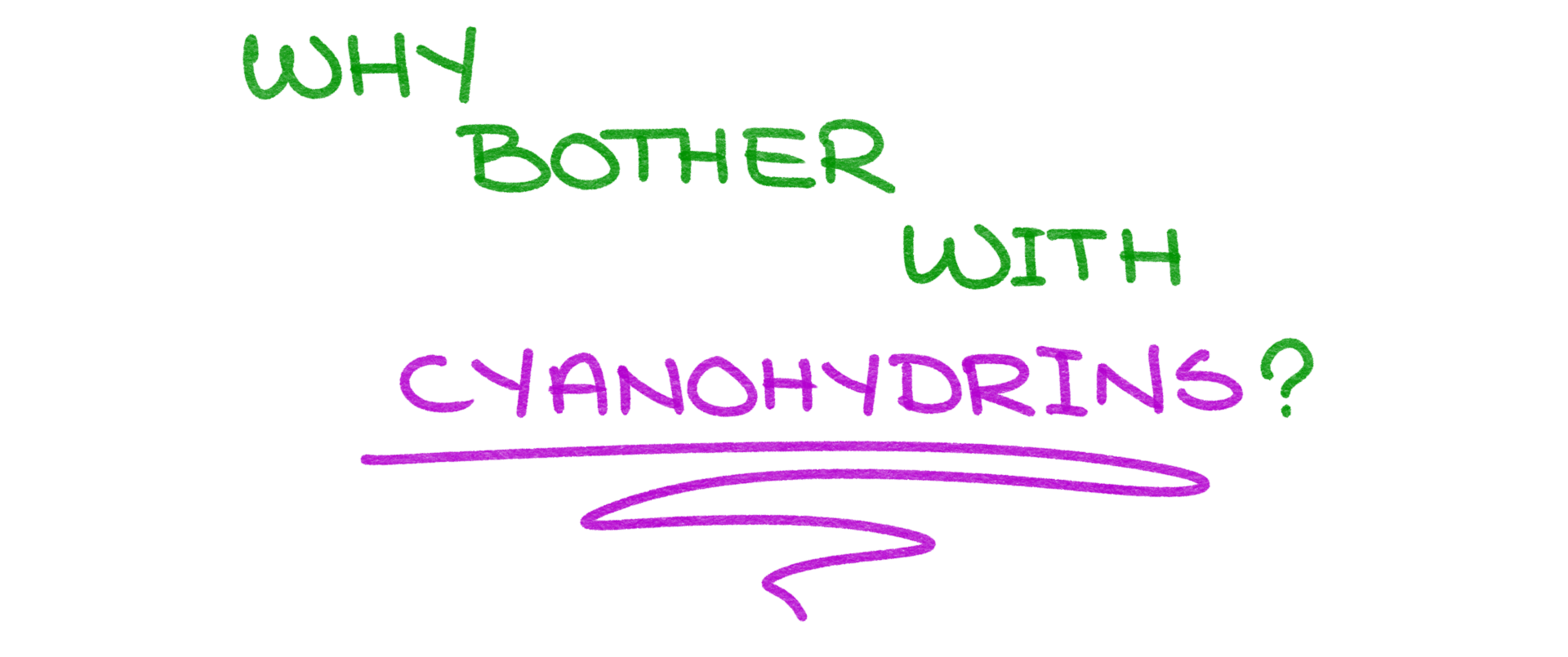 Now, why do we care about cyanohydrins? Outside of the fact that they are kind of a fun combination of functional groups, cyanohydrins have some very useful synthetic applications.