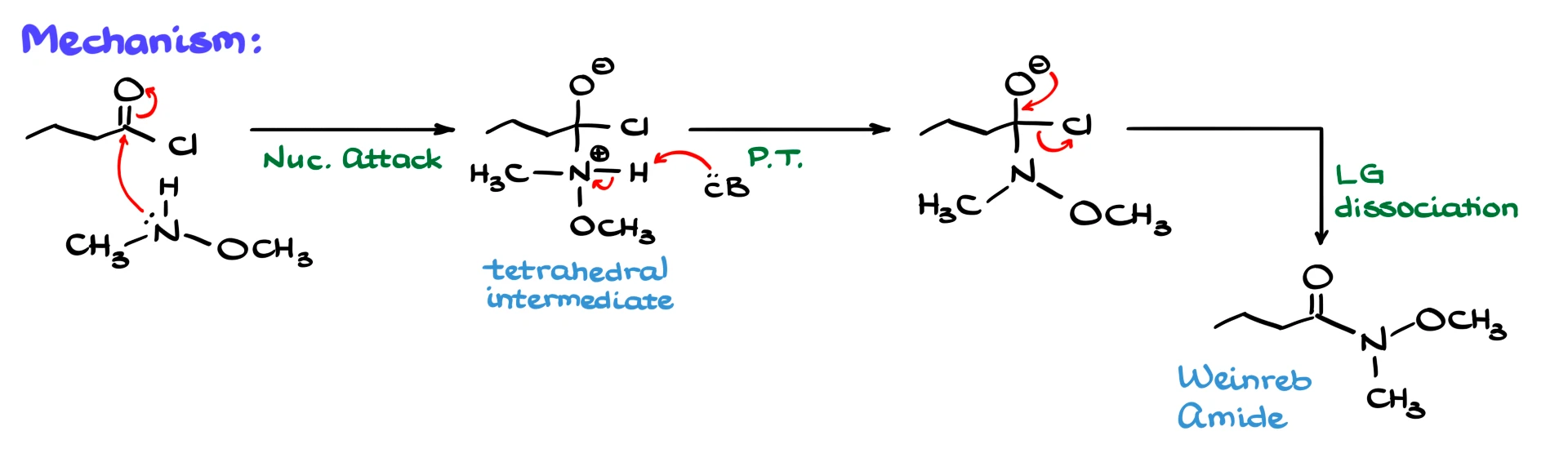Now, let’s briefly look at the mechanism of this last step, converting the acid chloride into the Weinreb amide.
