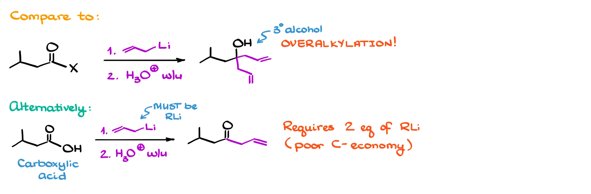 We could also form ketones from carboxylic acids using organolithium reagents, but that typically requires two equivalents of the reagent, which is wasteful, especially if the reagent is expensive. This is where Weinreb amides really shine.